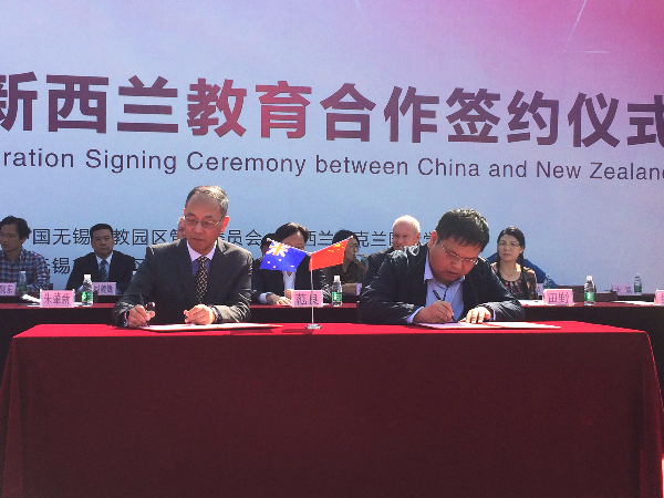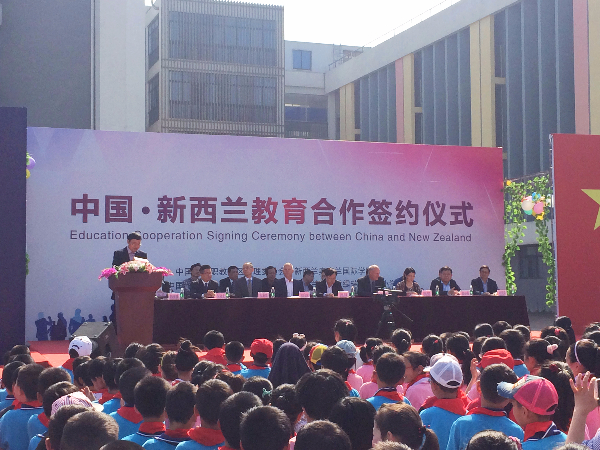 15日上午,在卡特先生的见证下,无锡职教园区管委会与新西兰奥克兰国际学院,以及华锐实验小学与新西兰奥克兰缇瑞莫阿娜小学(Tirimoana School)之间建立了友好合作关系。签约仪式完成后,由华锐实验小学全体师生为在场的各位外宾、领导及家长朋友们献上了精彩的文艺演出。