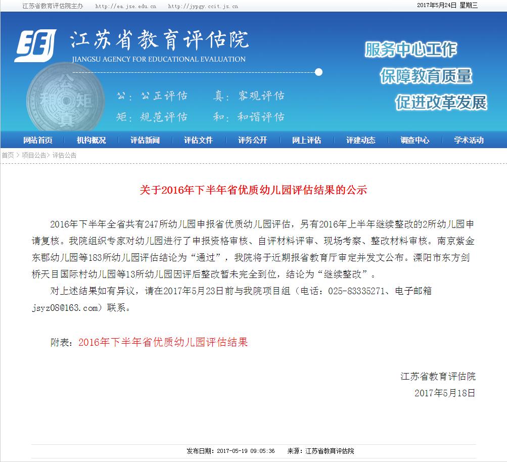 5月18日,江苏省教育评估院公布了2016下半年获得省优质幼儿园称号的单位,华锐教育旗下