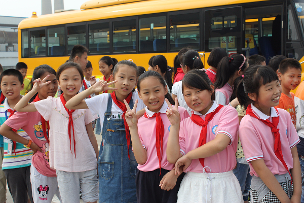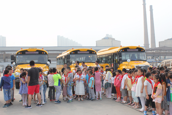 一大早同学们就在老师的带领下乘坐校车来到百乐广场,大家既兴奋又开心,纷纷猜测今天看的电影会是什么。