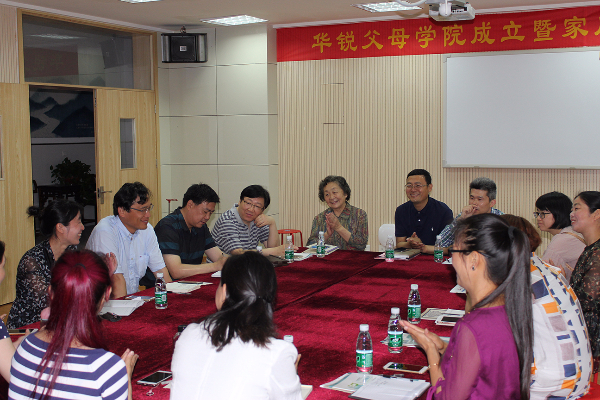 6月10日,在华锐实验小学五楼阶梯教室,由华锐教育研究院组织的华锐父母学院成立暨家庭教育座谈会正式召开,华锐教育集团旗下四家单位的领导及五位家长兼职研究员都参与会议。会议同时邀请了江南大学教授周元、全国语文名师诸向阳为父母学院的后续展开工作提供专家建议,并现场解答家长在家庭教育方面的问题。