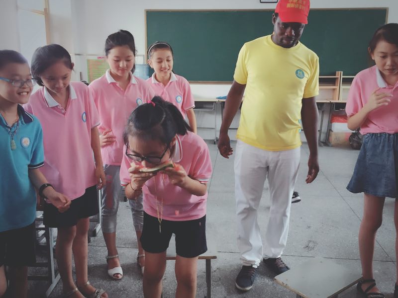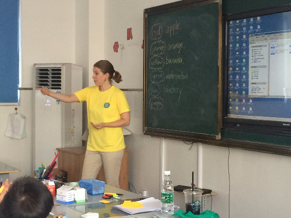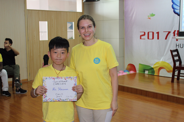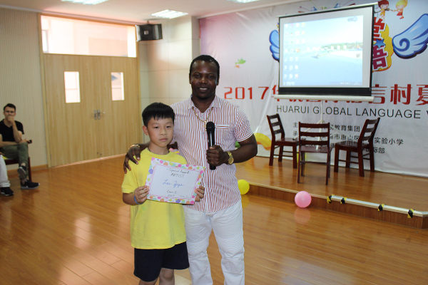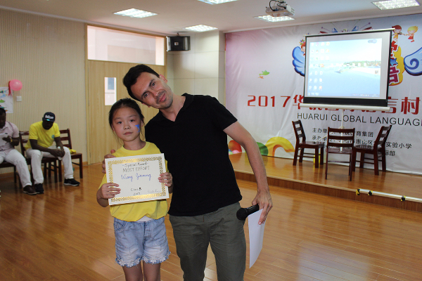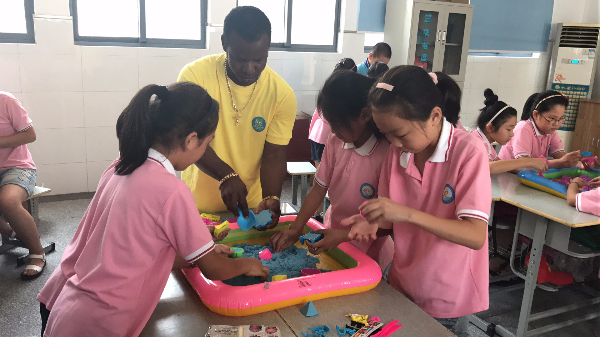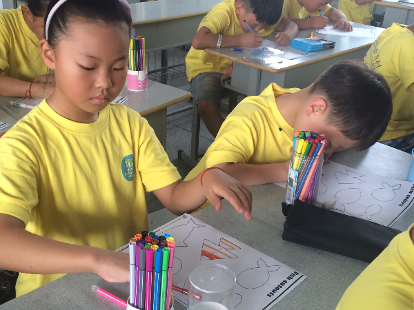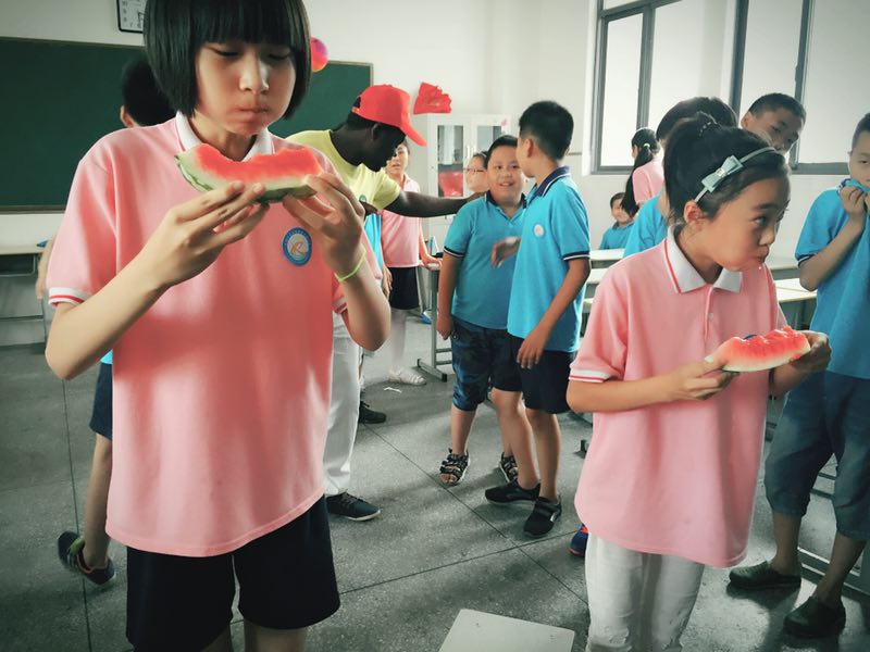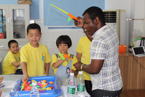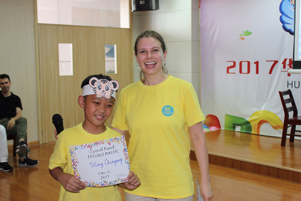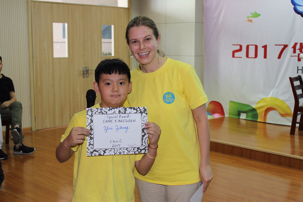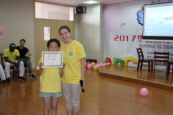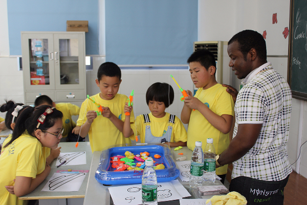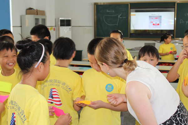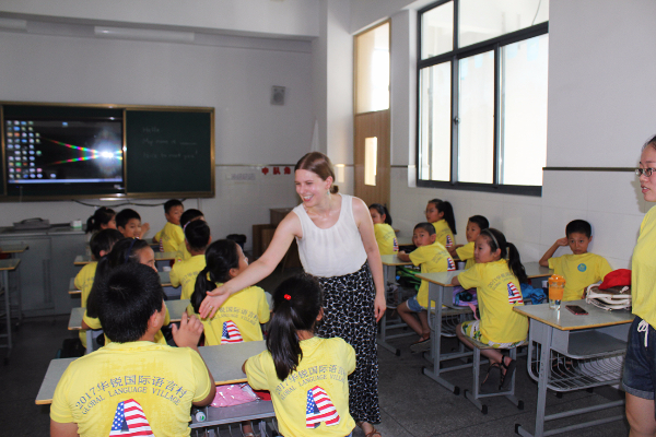 2017年7月24日,华锐实验小学第一届暑期夏令营国际语言村活动正式拉开帷幕。本次夏令营活动特别邀请了美国康奈迪格州州立大学克里斯塔(Krista) 等六位外籍老师,来到华锐实验小学,为孩子们带来为期一周的外教英语课,带领他们体验国外的游戏式教学方式,在潜移默化中培养孩子对英语的兴趣。短短五天的英语课中,外教老师寓教于乐的教学方法、风趣幽默的讲课方式让孩子们在课堂上玩的不亦乐乎。在中方老师的辅助下,孩子们也逐渐开始对英语产生兴趣,放下羞涩,大胆的用英文与外教老师交流,并积极参与课堂互动。