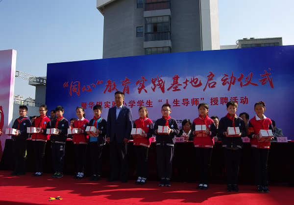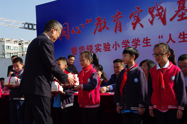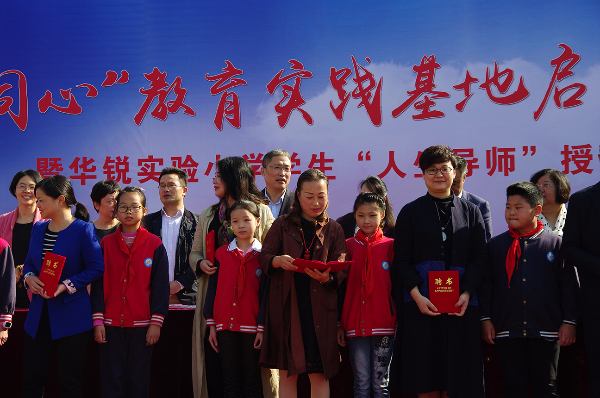 2017年10月24日,在华锐实验小学举行了“同心”教育实践基地揭牌暨华锐实验小学学生“班级导师”授聘活动。
