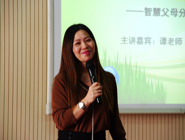 谭敏老师在华锐实验小学五楼阶梯教室为家长朋友们言传身教,通过生动的事例,科学的理论知识,有趣的心理学故事为全体家长们分享了科学系统的家庭教育知识。