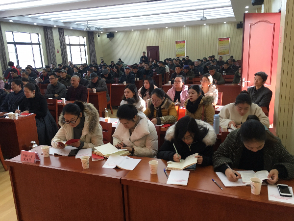 2017年12月22日上午,惠山区委宣讲团成员、钱桥街道党工委书记何国清在为来自苏庙社区7个党支部、12个党小组的200多名党员干部宣讲十九大精神,华锐教育集团全体党员也出席了本次学习活动。