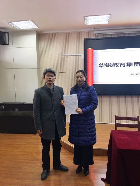 华锐教育集团董事长韩荣寨首先发言,许下新年梦想,为新的一年集团发展做了总体规划。随后三所幼儿园签订2018年目标责任书,将新年计划落实到实处。华锐教育集团副总校长、华锐教育研究院常务副院长朱斌为三家单位管理层现场培训,逐条分解华锐教育新年目标,帮助各管理层人员明晰新年使命,切实完成新年计划。