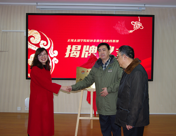 2018年3月6日,无锡太湖学院师生来到华锐实验小学参观校内各场馆,并与华锐实验小学执行校长阎巍巍一同举行了非遗传承实践基地揭牌仪式。