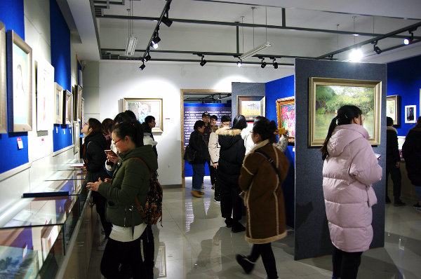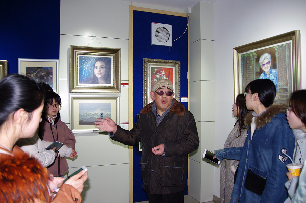 同学们同时参观了华锐美术馆、民俗馆、蓝印花布博物馆,并在影视中心观看了一部纪录片,并听取了蓝印花布博物馆馆长陆瑞兴关于各个场馆的介绍和作品讲解,同学们兴趣满满,在展品前仔细观察、拍照。