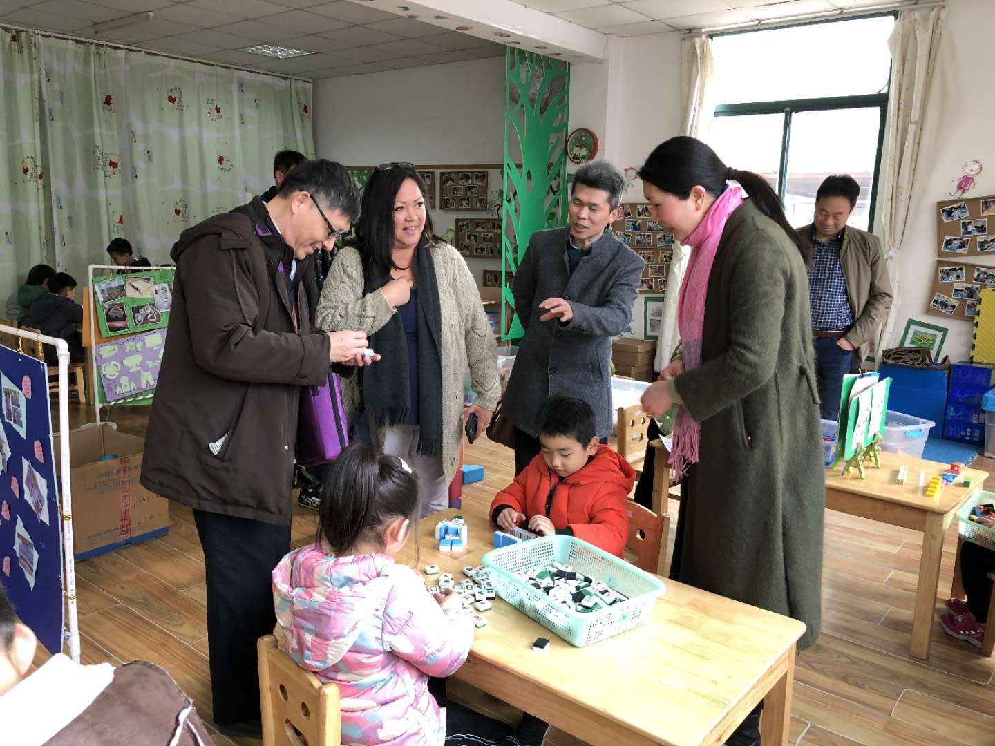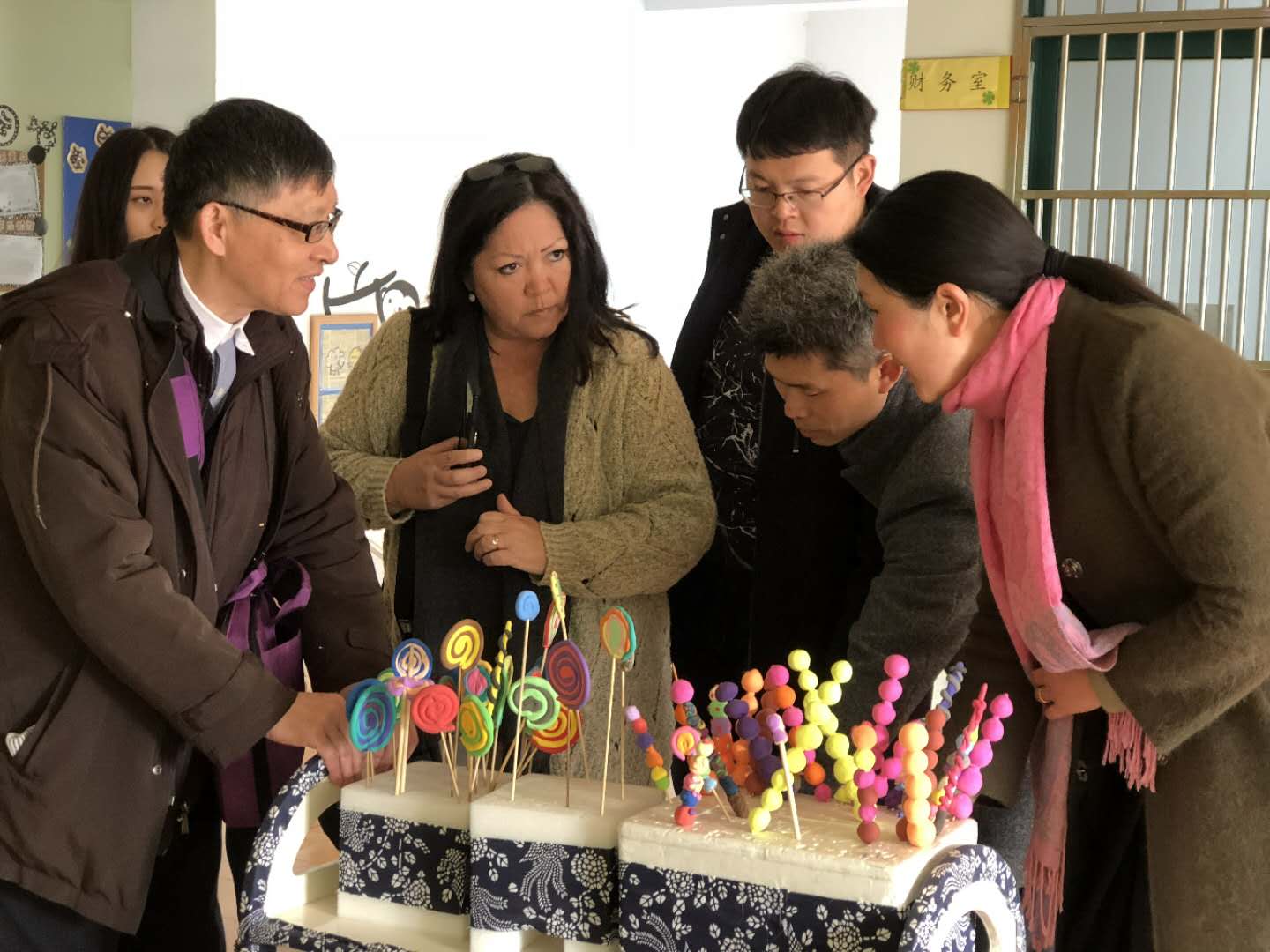 贝吉•考迪尔女士首先参观了华锐教育旗下两所幼儿园,并旁观了幼儿园孩子们的上课情况及孩子们丰富多彩的手工作品。参观过程中两位园长同时与贝吉•考迪尔女士进行亲切交流,向他们介绍了幼儿园中的游戏课程、泥塑课题、环境创设等,贝吉•考迪尔女士对幼儿园给予了高度评价,并发出盛情邀请,希望有机会能让华锐教育的孩子们走进美国的学校,做进一步深入地交流。