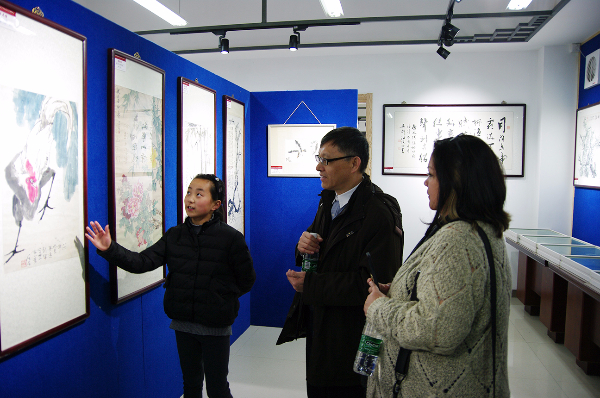 贝吉•考迪尔女士又来到华锐实验小学参观。在韩董事长的带领下参观了华锐实验小学内的各个场馆,在华锐教育集团美术馆和蓝印花布博物馆中分别由华锐实验小学四年级(2)班 于子萱 和二年级(2)班 唐昊然 为来宾讲解介绍馆内藏品。他们流利的解说和落落大方的态度让考迪尔女士也不禁称赞连连。