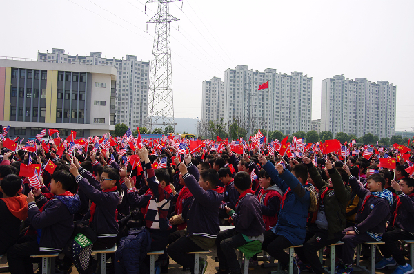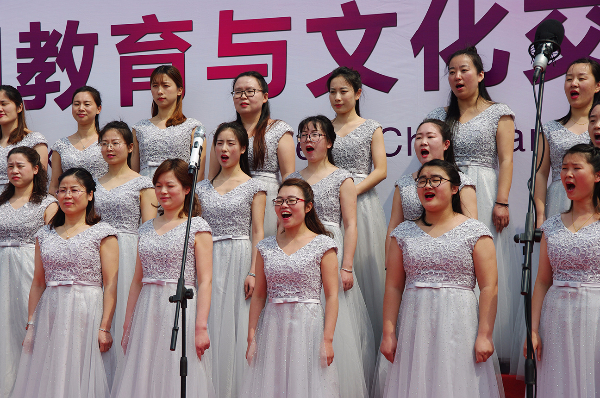 参观完校内场馆,贝吉•考迪尔女士一行又来到操场观看了华锐教育集团师生们带来的文艺演出。