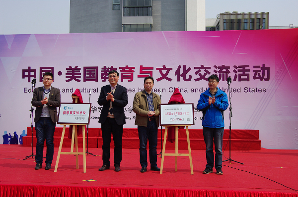 随后,无锡市惠山区教育局基教科副科长杨国庆、无锡市惠山区钱桥街道团工委书记马骏、江苏省教育学会民办教育专委会秘书长钮勤章和华锐教育集团董事长韩荣寨一起为华锐实验小学揭牌,祝贺华锐实验小学取得2017江苏省民办教育联盟示范校及新教育实验学校的光荣称号。