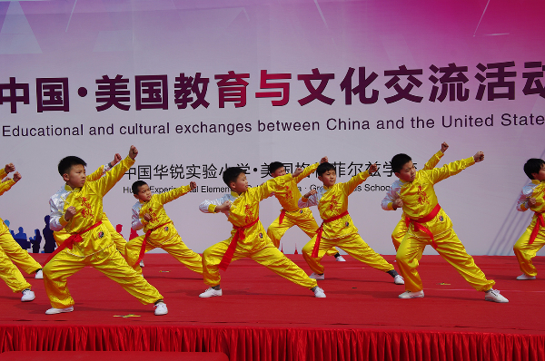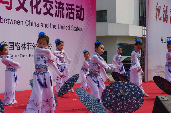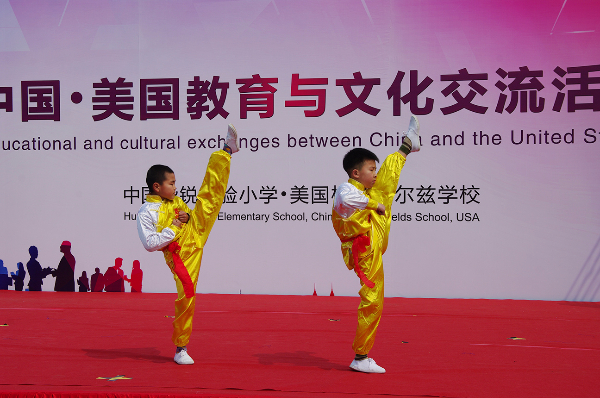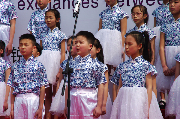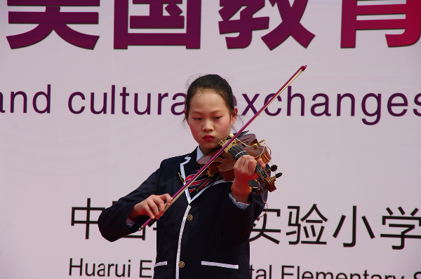 丰富多彩的文艺演出在揭牌仪式后开始了,有华锐合唱团带来的童声合唱、女声合唱,有舞蹈《青花瓷》,有悠扬的小提琴独奏《天空之城》,有充满无锡特色的独唱《茉莉花》及合唱《小小无锡景》,最后还有威风凛凛的武术表演。现场观看的嘉宾和学生家长们一起目不转睛,共同为精彩的表演喝彩。