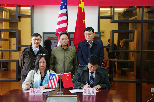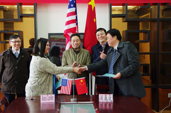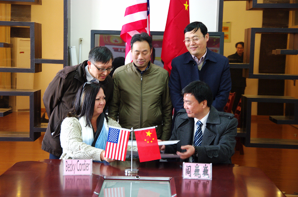 参观结束后,华锐教育集团董事长韩荣寨向贝吉•考迪尔女士详细介绍了华锐教育的办学理念、教育模式和集团发展概况,并就双方进一步友好交流合作达成了一致意见,签署《华锐实验小学及美国格林菲尔兹学校友好合作学校建立备忘录》。