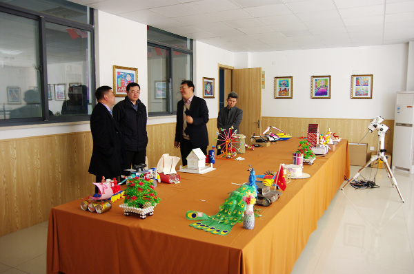 华锐教育集团董事长韩荣寨带领两位嘉宾参观了华锐实验小学内的各个场馆,两位嘉宾对学校在素质教育上的创新予以高度评价及肯定。