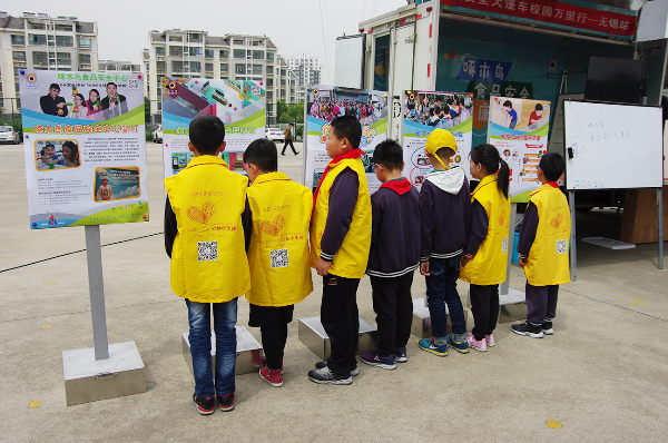 2018年4月16日,华锐实验小学和啄木鸟食品安全中心联合举办了一场食品安全大篷车活动。无锡市惠山区市场监督管理局领导李洪信、无锡市惠山区民政局领导吴静洁、惠山区钱桥街道工商局领导徐磊、惠山区钱桥街道民政办李娜等多位领导出席参加了本次活动。