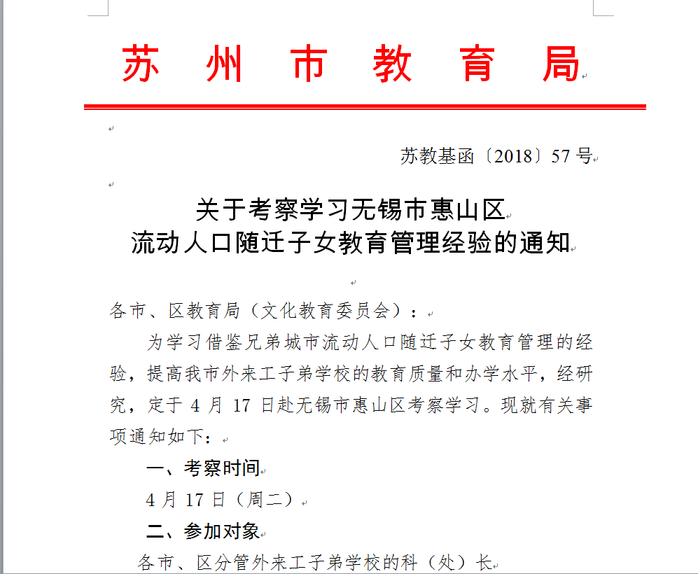 2018年4月17日,由苏州民办教育管理处张可伟处长带队的苏州教育考察团一行12人来到华锐实验小学进行参观访问交流活动, 无锡市惠山区教育局副局长沈建清、基教科科长沈定一、钱桥街道教育办公室主任杭月新全程参与陪同。