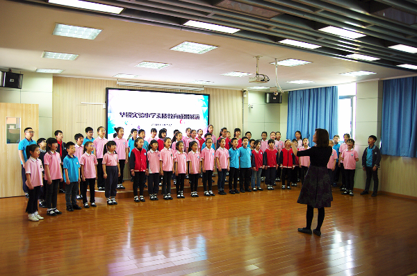 在小学门口,苏州教育考察团就受到了同学们的热烈欢迎,随后在华锐实验小学校长、华锐教育集团董事长韩荣寨的引领下,考察团参观了华锐实验小学内各个场馆,并于五楼阶梯教室观看了华锐小学学生们的精彩演出。