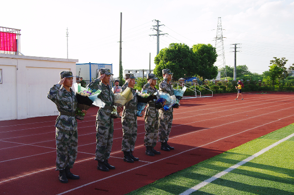 结训仪式最后,各班级学生代表为教官们献上鲜花,感谢他们五天的陪伴和谆谆教诲。