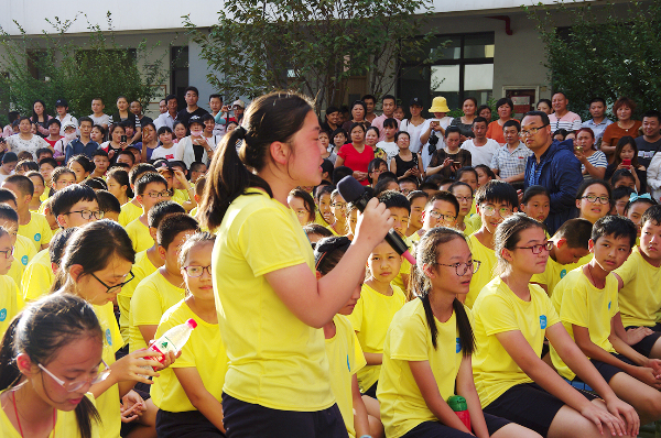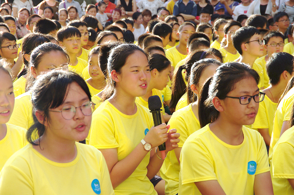华锐实验学校致力于培养具有“中国心”和“国际范”的学生,让他们有机会走出国门,开阔眼界。今年10月初,华锐实验学校将选派两位优秀初中学生代表华锐学校前往美国交流学习,参观哈佛大学、耶鲁大学等世界一流名校。华锐赴美学生代表七(2)班耿墨随及上台发表感言。