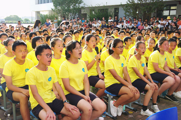 典礼首先由各班级演唱班级班歌开始,嘹亮的歌声响彻校园,这青春的歌谣带领同学们正式进入初中生活。