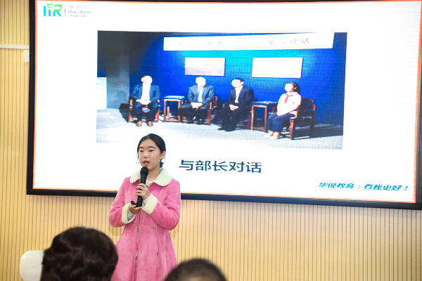 通过她们的讲述,为在场的嘉宾们全面展现了华锐教育培养的具有“中国心·国际范”的学生风采,两位学生从容自信、积极阳光的风貌感染所有与会人员,赢得全场阵阵掌声。