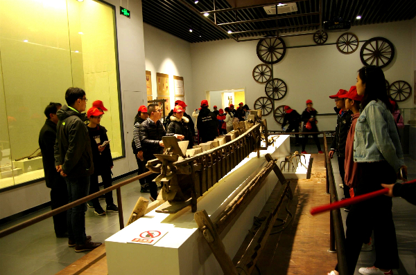 在中华农业文明博物馆,学生们在讲解员的介绍下,了解到博物馆里珍藏了大量从古至今的农具、茶具与古籍,其中有我国现存最早和最完整的一部农书《齐民要术》、战国时期的农具铁鏊子等,感受到中华文明的历史悠久与博大精深。