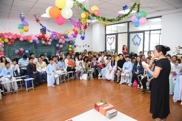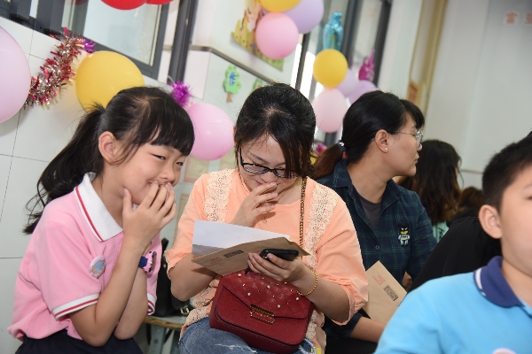 一大早,同学们和爸爸妈妈开开心心地来到学校,走过“成长门”,来到教室。教室都被老师们精心地布置过, 看到桌上的庆祝蛋糕,教室一角爸爸妈妈为孩子们准备的礼物,孩子们今天好开心。