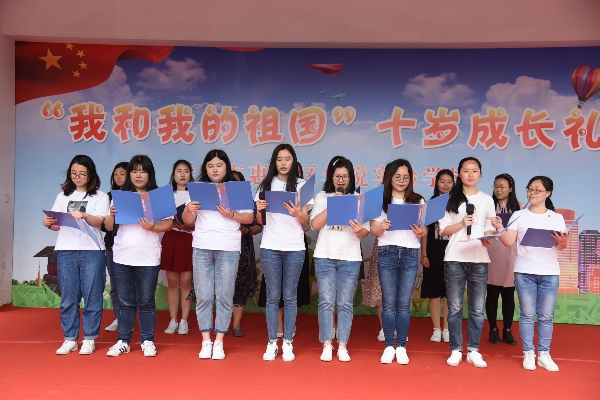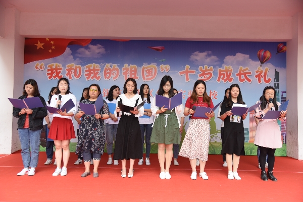 随后,全体成员来到操场上,“我和我的祖国”十岁成长礼仪式正式开始。
