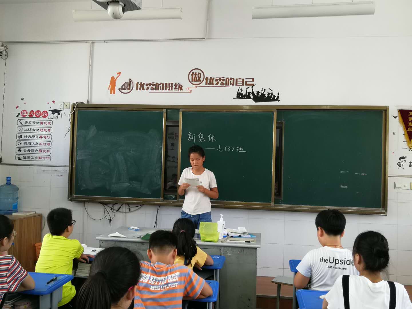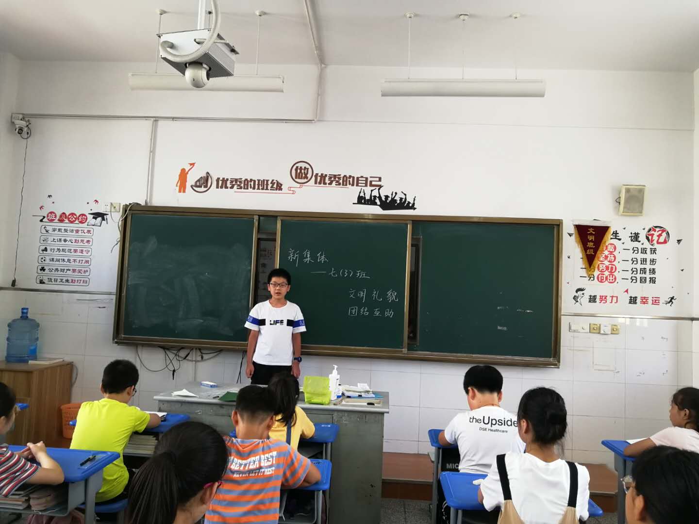 2020年8月18日,七年级新生适应周进入第二天。今天同学们开展了主题为“新集体”的班会,班会上大家畅所欲言,有的同学说说自己的初中三年将怎么度过,有的同学用笔记录下了自己的规划,大家还一起拟定了班规。