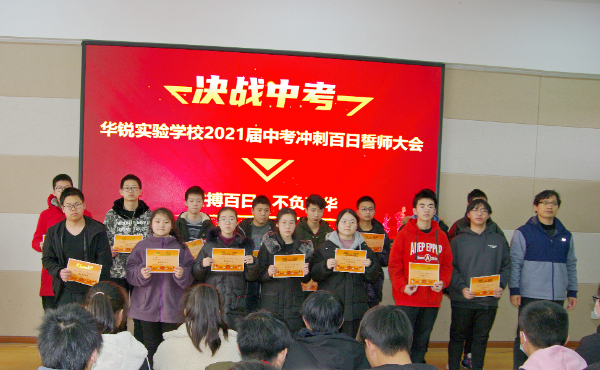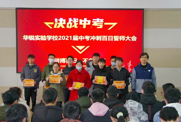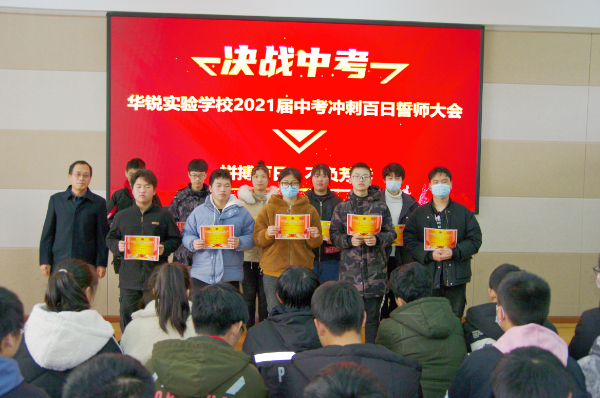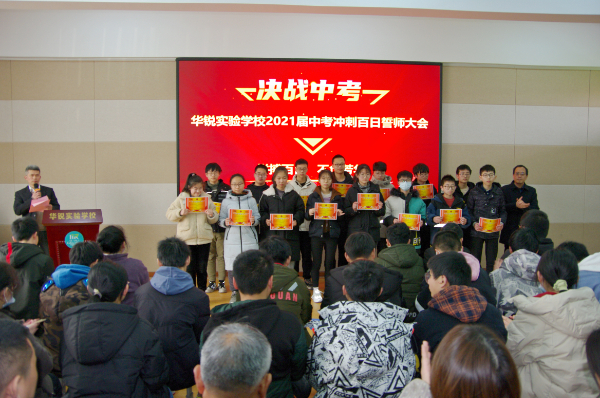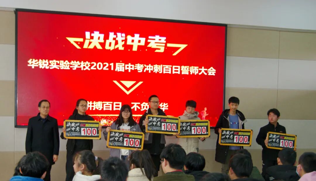 沈伟副校长为九年级各班颁发中考冲刺倒计时牌,倒计时100天正式开始