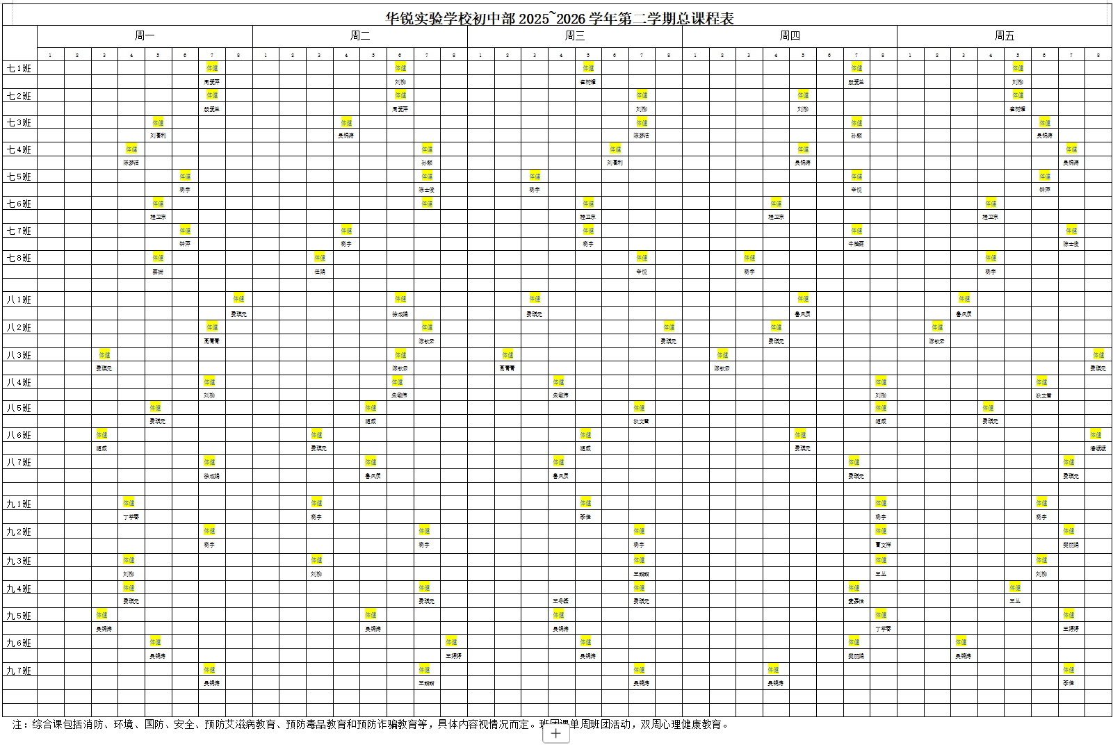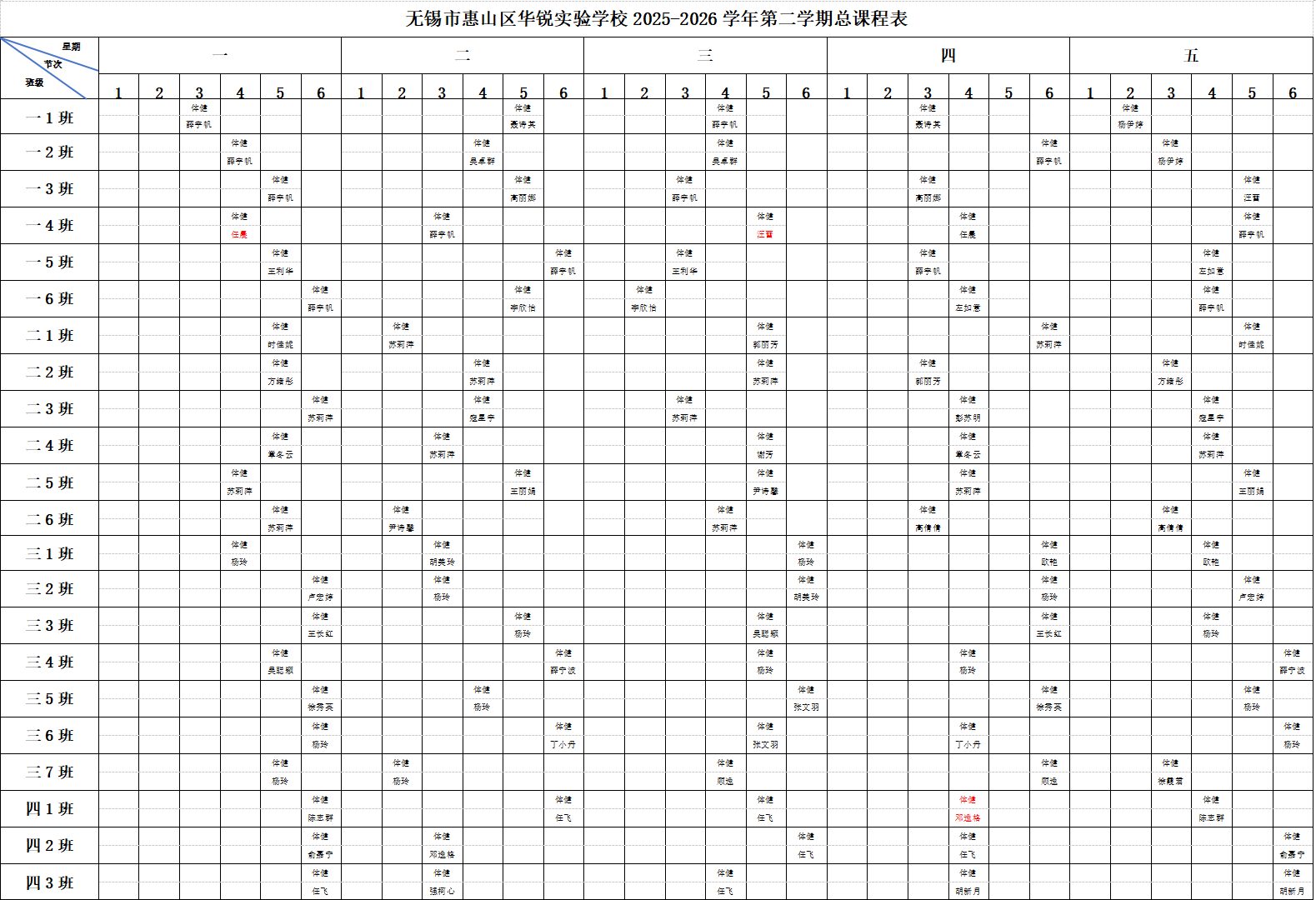 无锡市惠山区华锐实验学校2025年体育、体健总课表