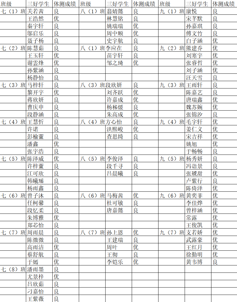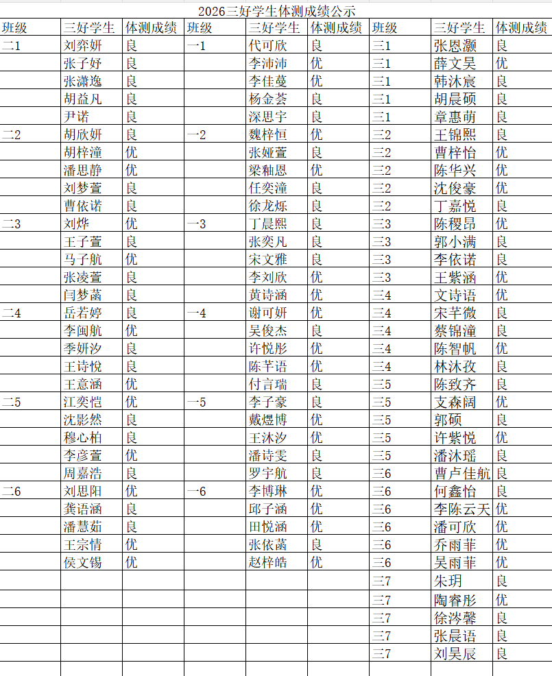 2025年度江苏省无锡市惠山区华锐实验学校学生体质健康排名及三好学生名单公示